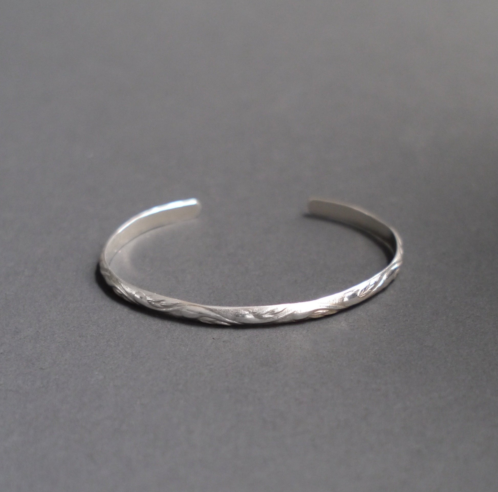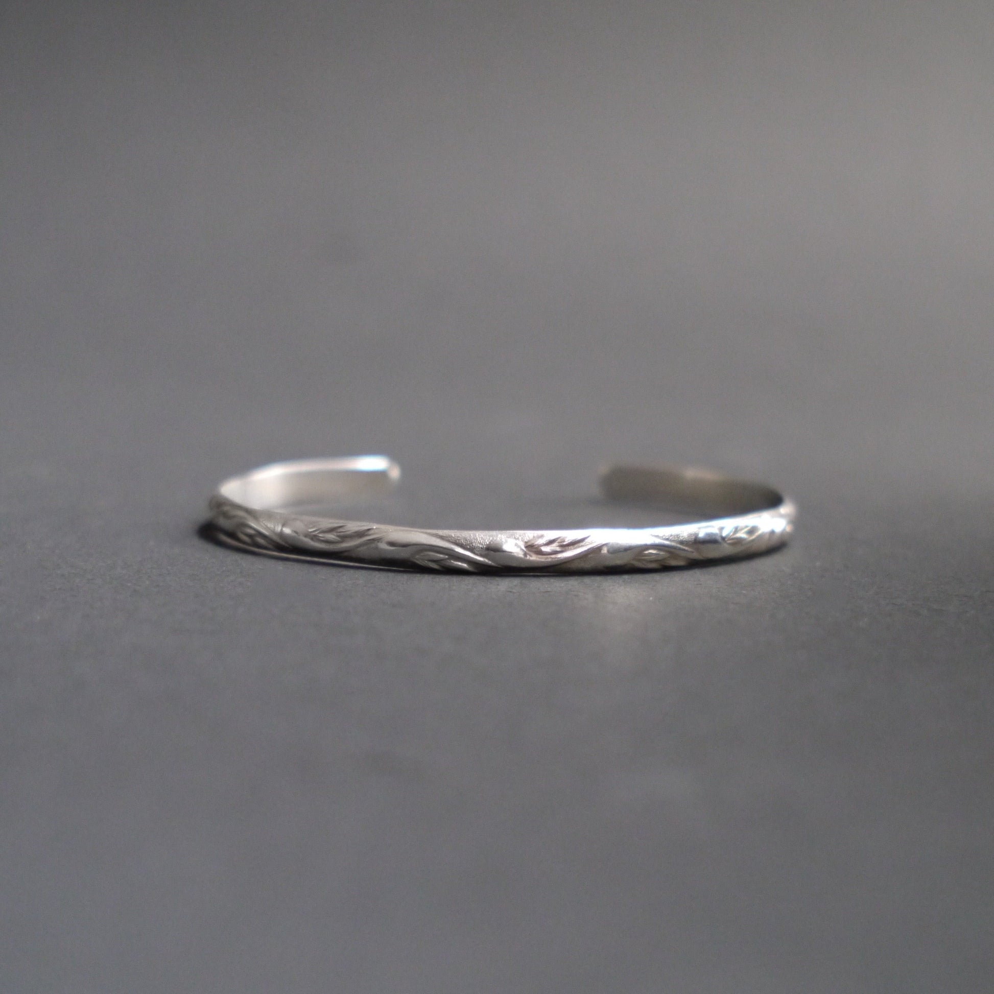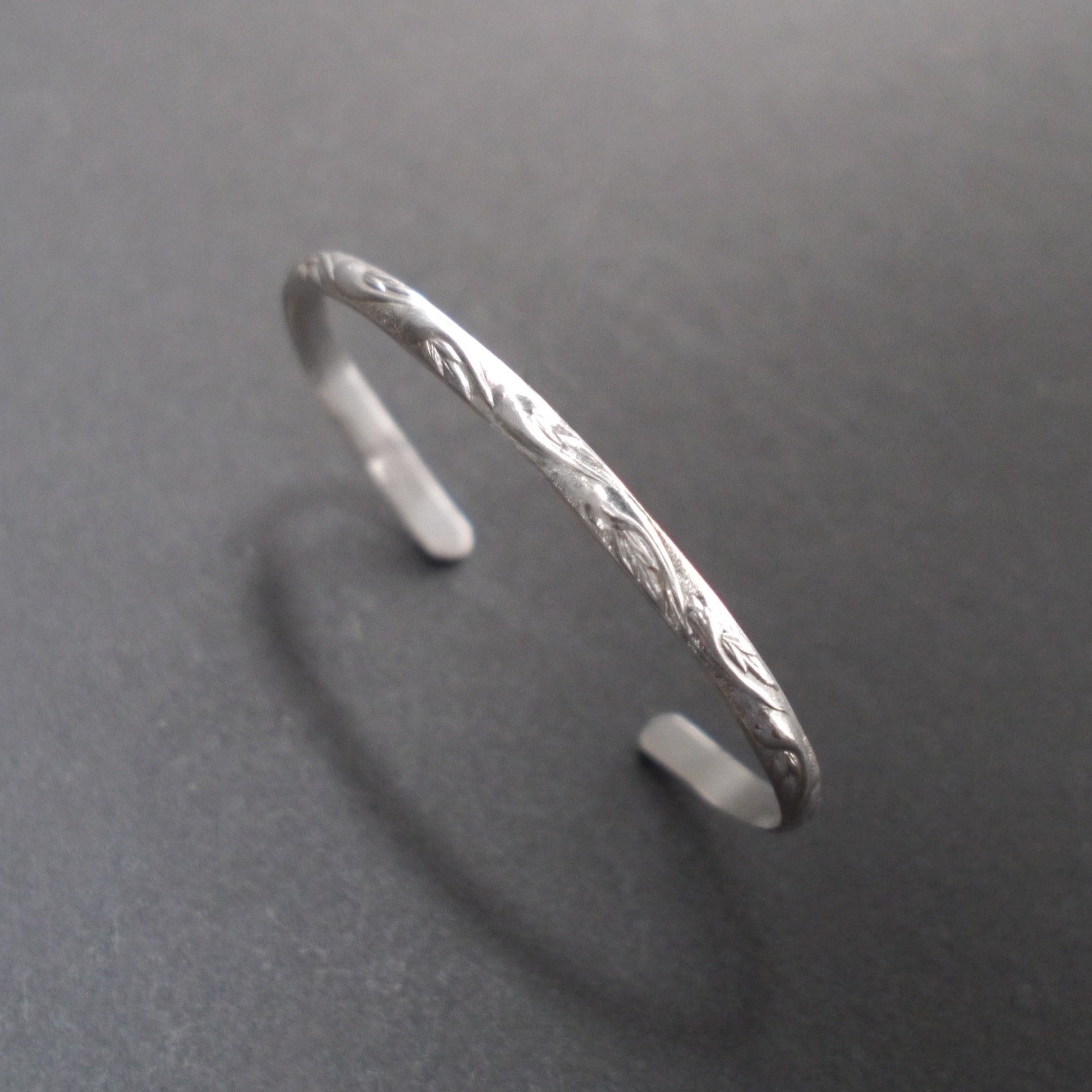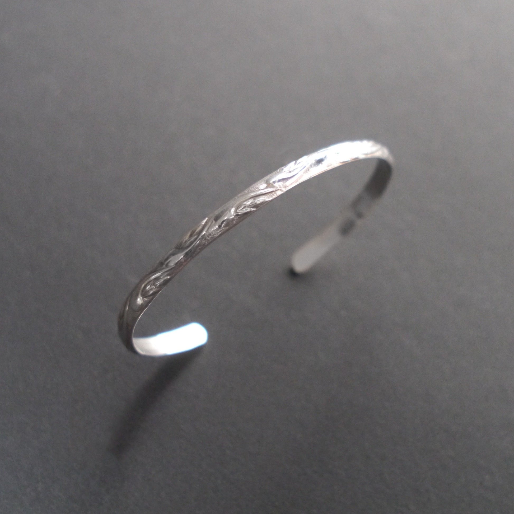 Timelessly stylish sterling silver cuff, printed with a delicate paisley pattern. Handcrafted from recycled sterling silver, measuring 4mm wide and 2mm thick.
