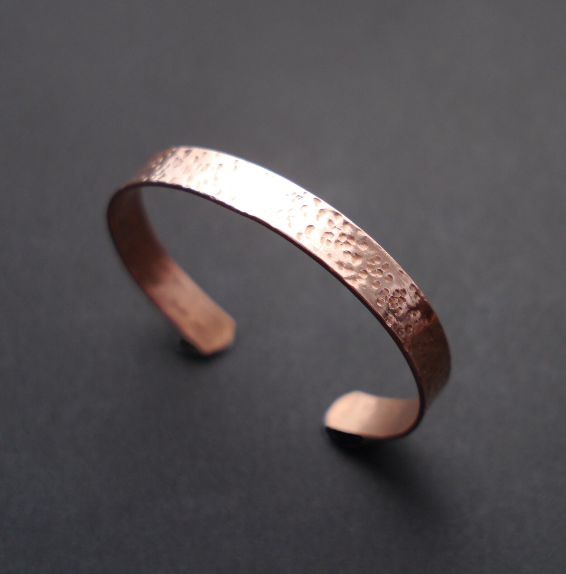 These wide cuff bracelets are handcrafted to be comfortable and stylish for any gender. Hand-forged out of recycled copper, these cuffs will adjust slightly to achieve the perfect fit. This cuff measures 9mm (3/8 inches) wide and 1.5 mm thick. The warm glow of raw copper compliments any style and combines with our other copper cuff styles or stacking!