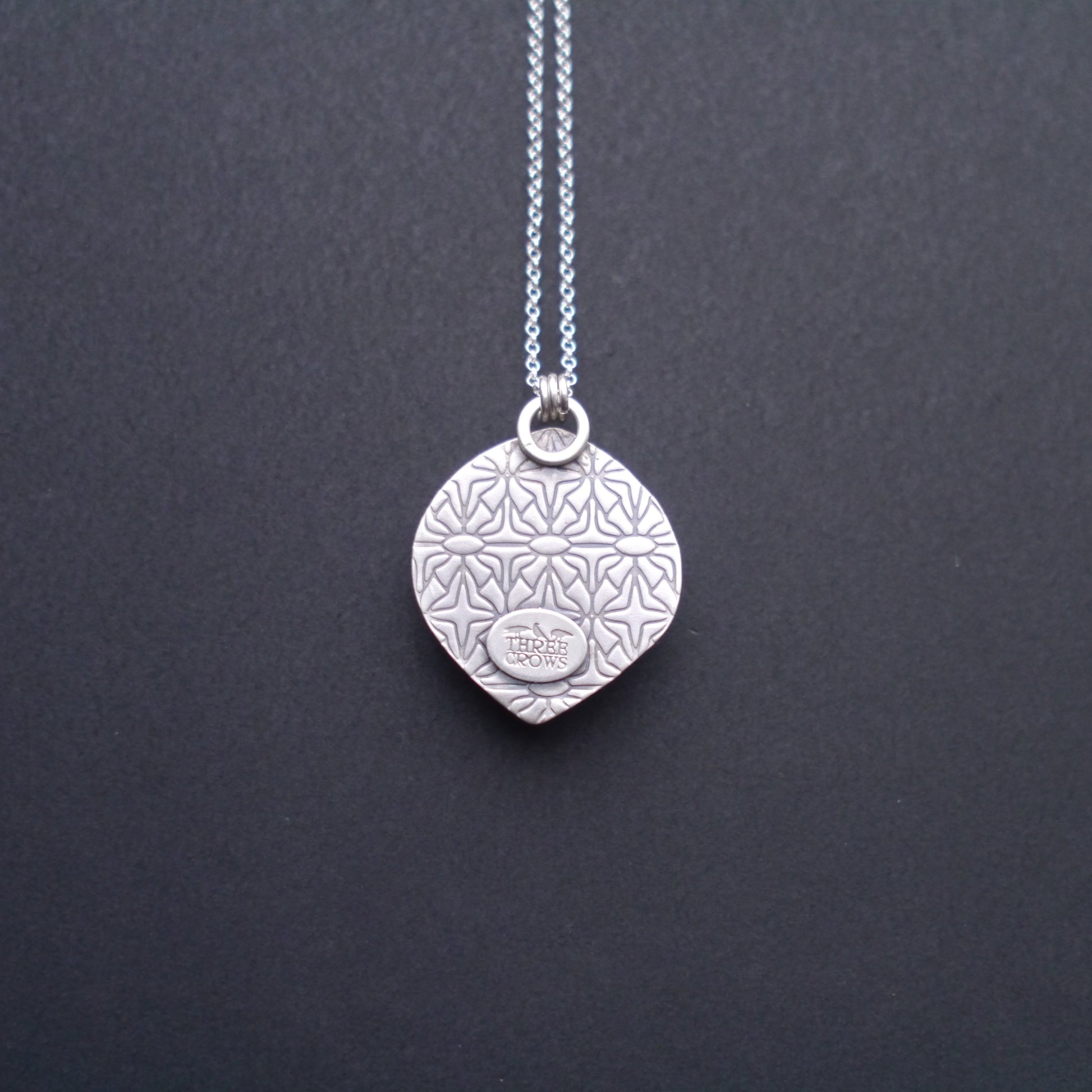 Pictured on an 18-inch sterling silver 1.65 mm rolo chain with a small lobster clasp, this pendant can be customized with your choice of chain styles and lengths. Explore the options by clicking here.